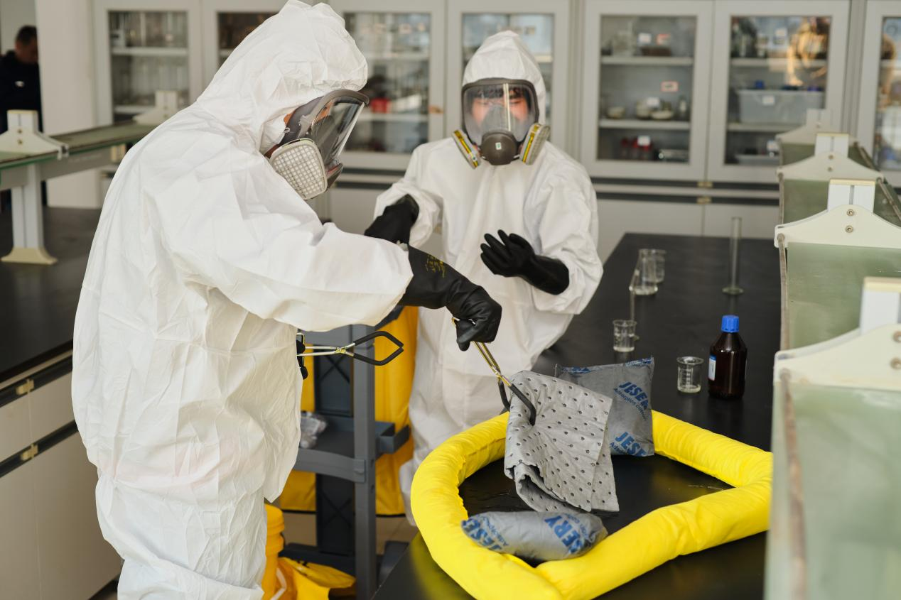 我校组织开展实验室危化品泄漏应急演练活动